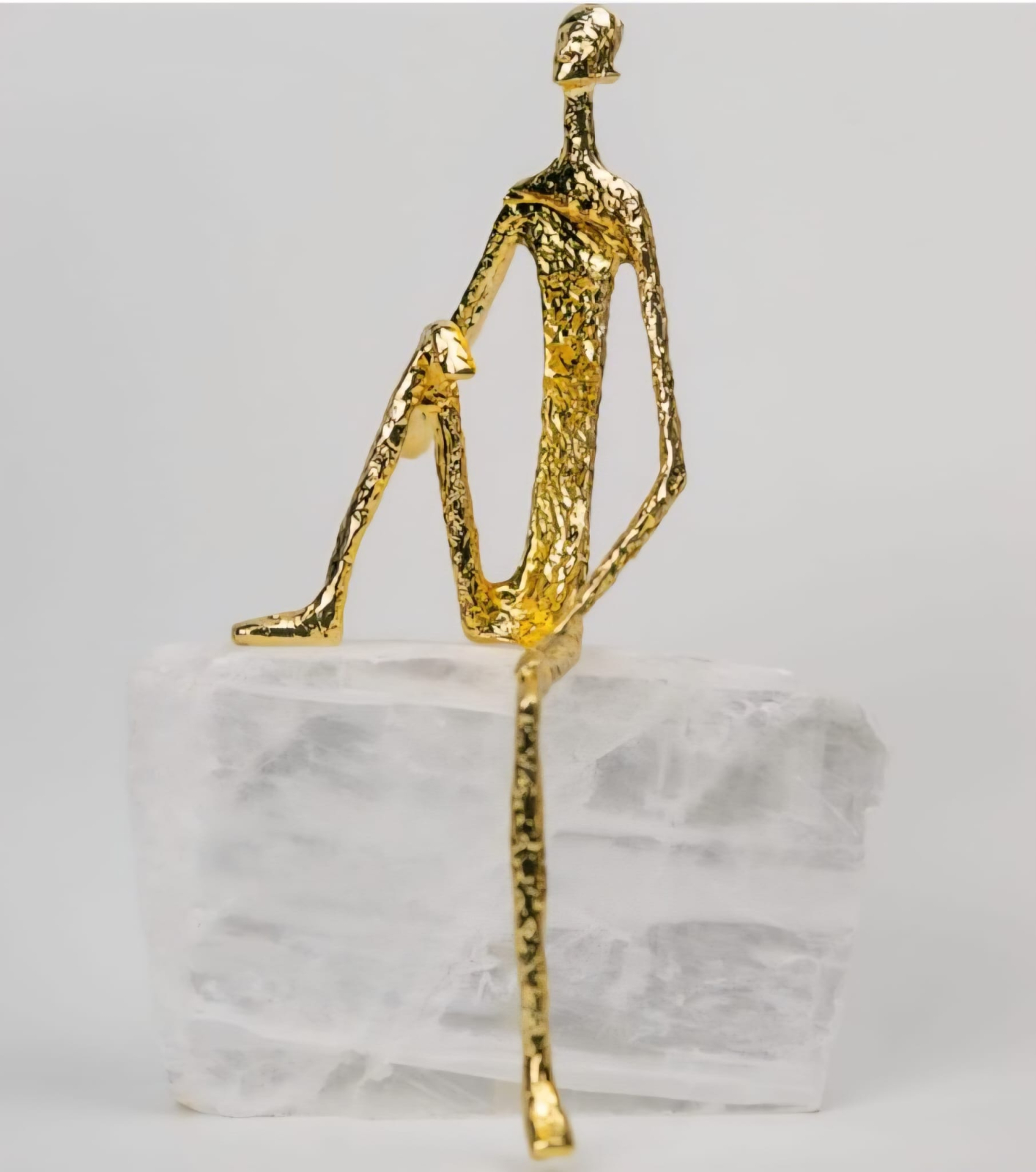 Figurina decorativă 198 este o piesă modernă și versatilă, cu un design artistic foarte actual. Realizată din metal, prezintă o siluetă stilizată, cu o postură relaxată, perfectă pentru amplasarea pe margini de mobilier – fie că vorbim de o poliță, birou, noptieră sau bibliotecă.
