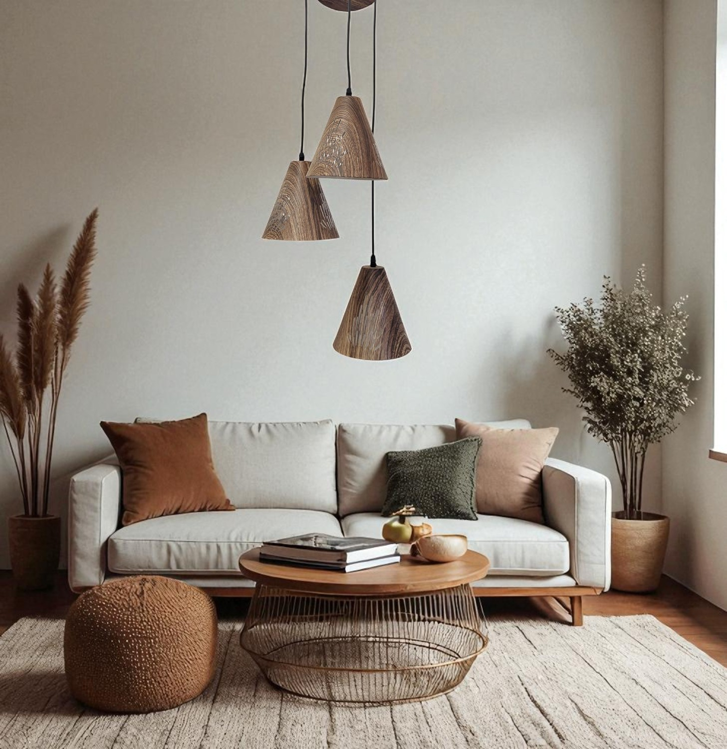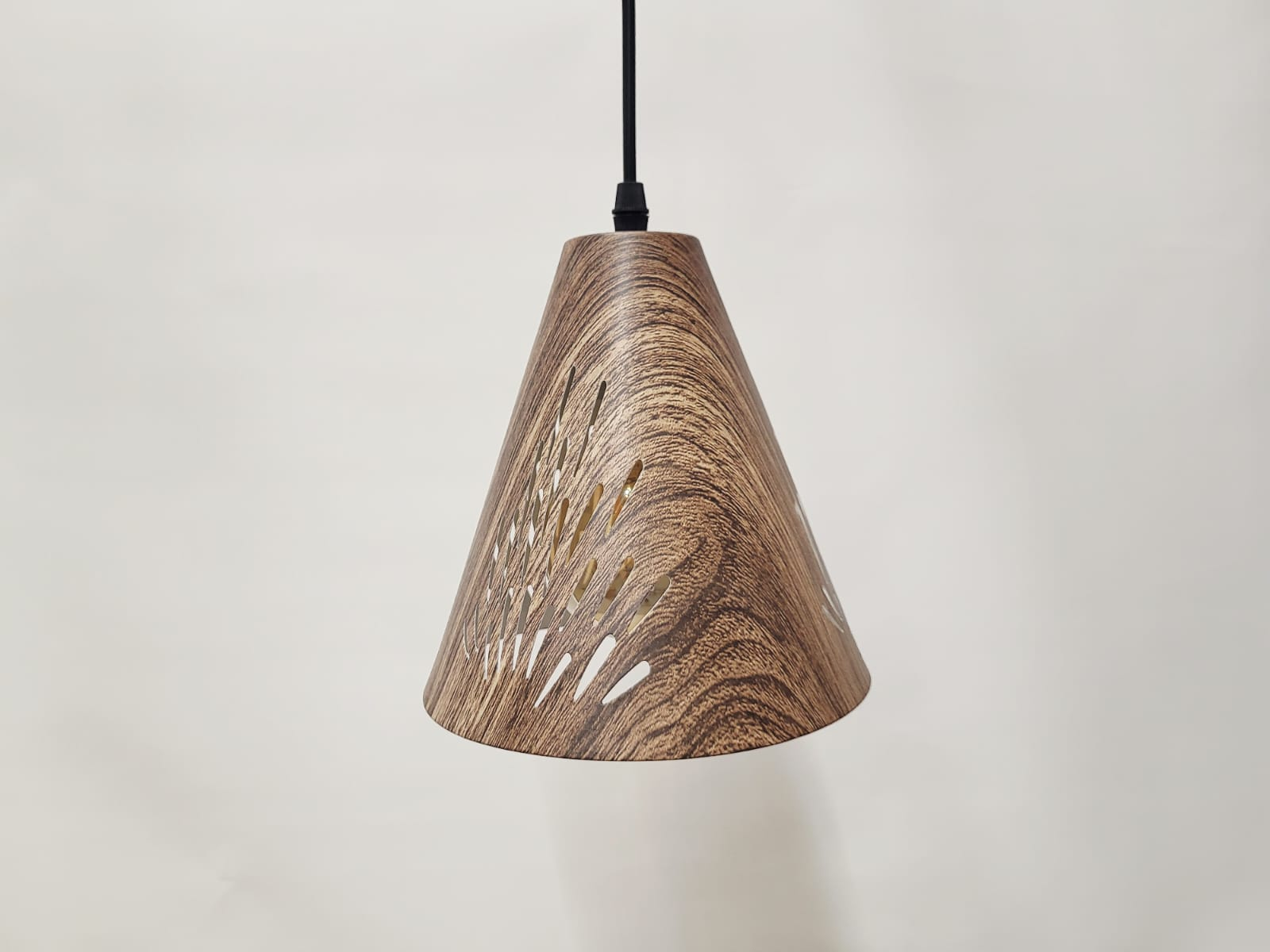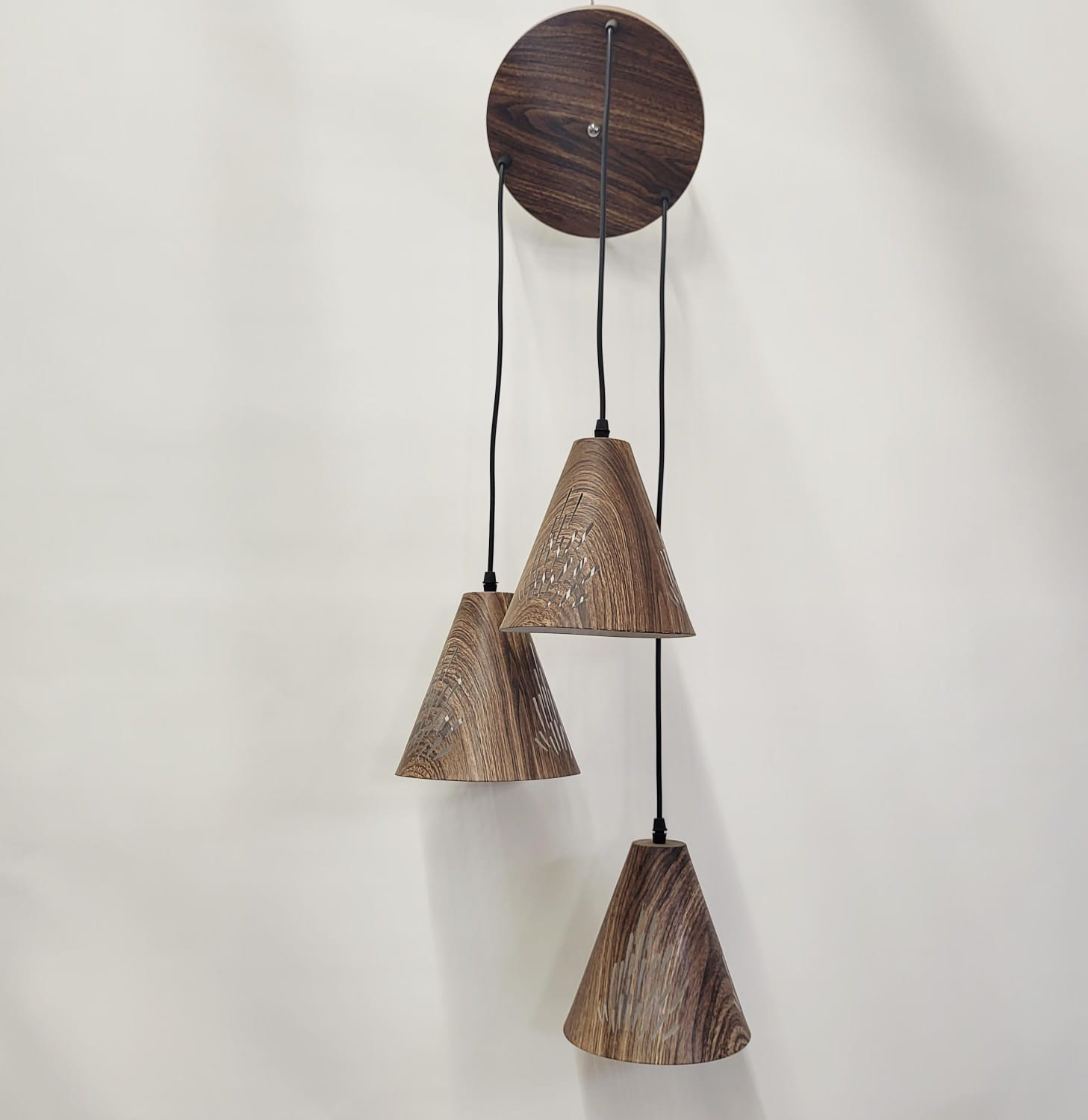 Alege un corp de iluminat care îmbină estetica modernă cu naturalețea texturii lemnului: lustra 611/3. Cu un finisaj maro ce imită perfect lemnul și cu abajururi conice perforate, această lustră nu doar iluminează, ci și decorează spațiul.