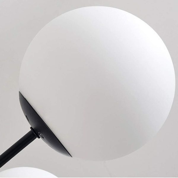 Lustră 9208/3+3 din metal negru cu globuri din sticlă alb mat – design modern, 6 surse de lumină E27