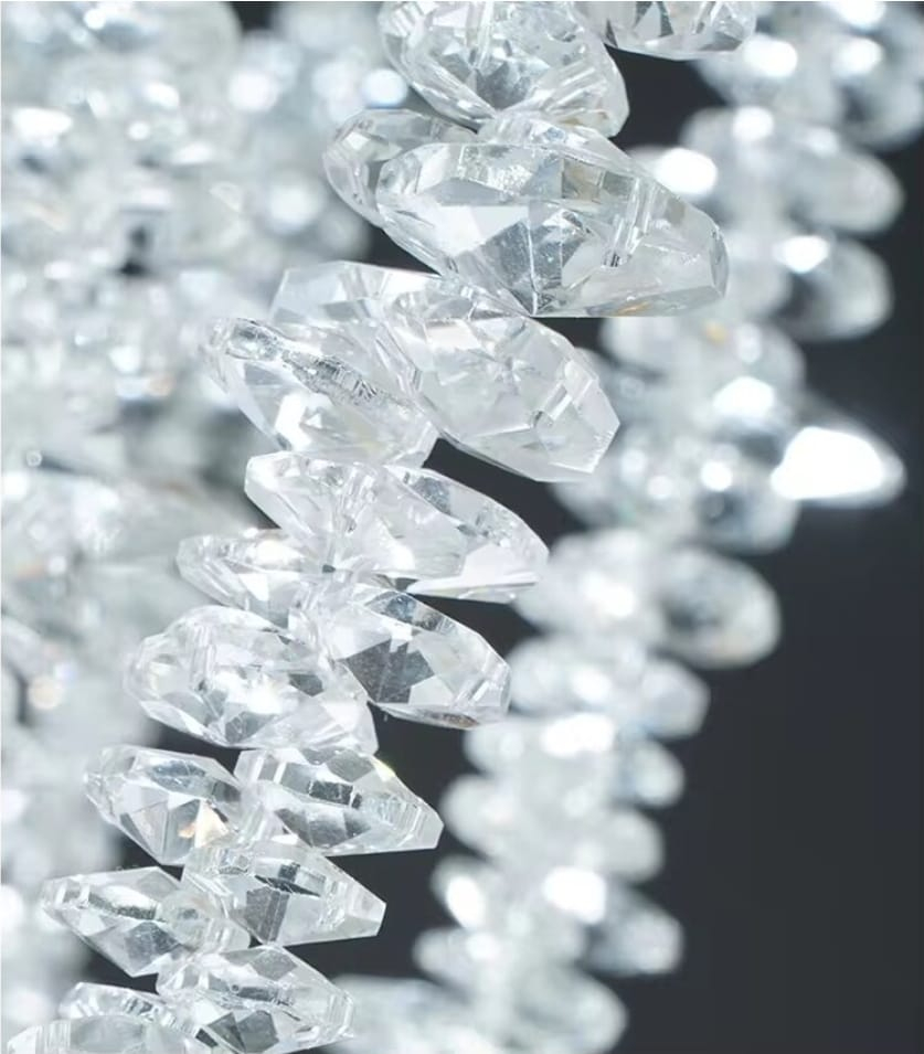 Designul său este inspirat din elemente naturale, ramurile aurii fiind completate de șiruri de cristale dispuse asemenea frunzelor, creând un efect vizual fluid și elegant. Cristalele K9 sunt cunoscute pentru puritatea și strălucirea lor, oferind reflexii luminoase plăcute și o atmosferă caldă.
