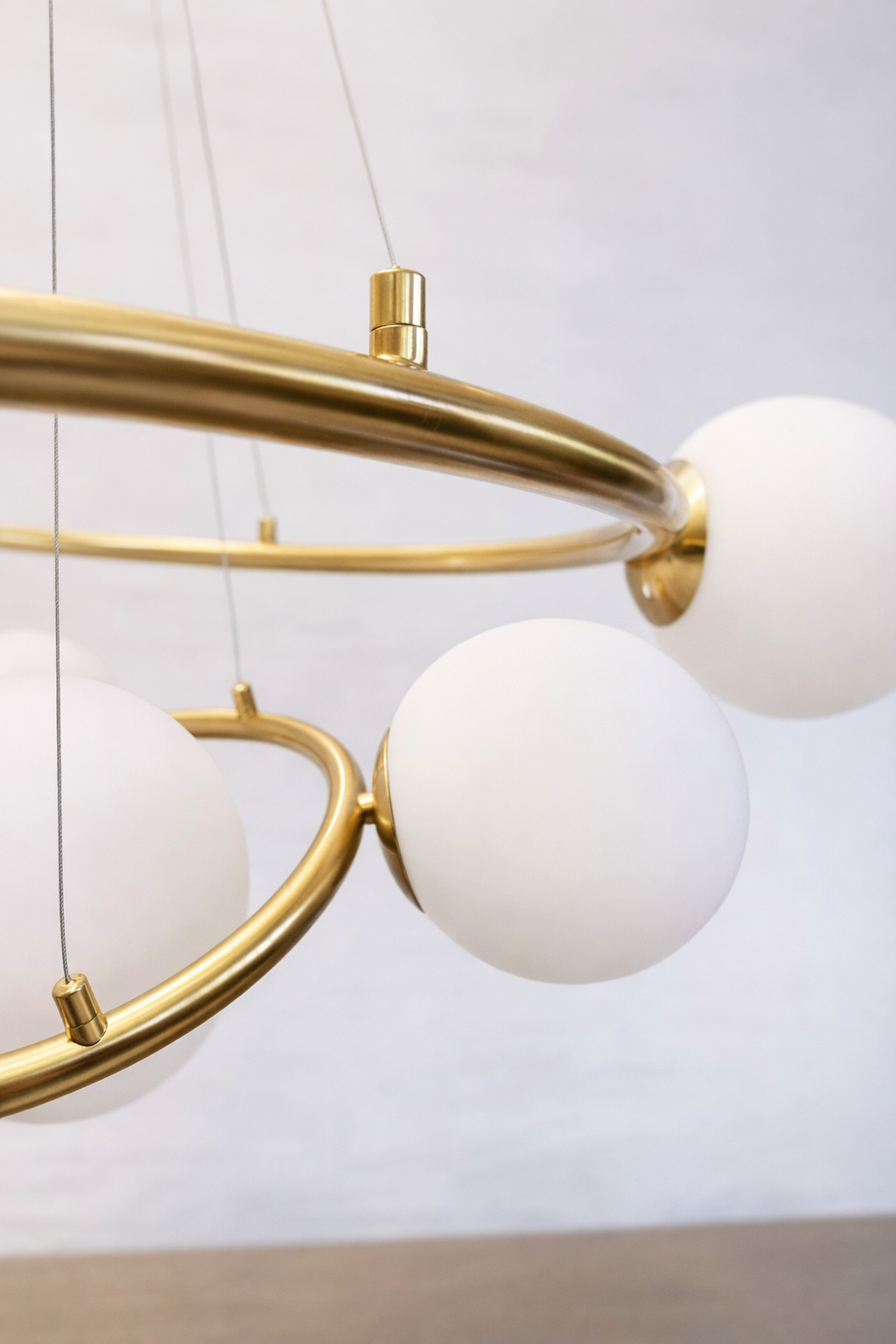 Lustră HJ9222/7D – 7 becuri E27, cadru metal auriu și abajur sticlă albă mată