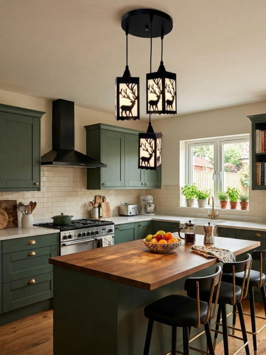 Cele trei pendule suspendate oferă un efect vizual dinamic și permit iluminarea eficientă a zonei dorite. Înălțimea ajustabilă adaugă un plus de versatilitate, fiind potrivită atât pentru spații mai joase, cât și pentru încăperi înalte.