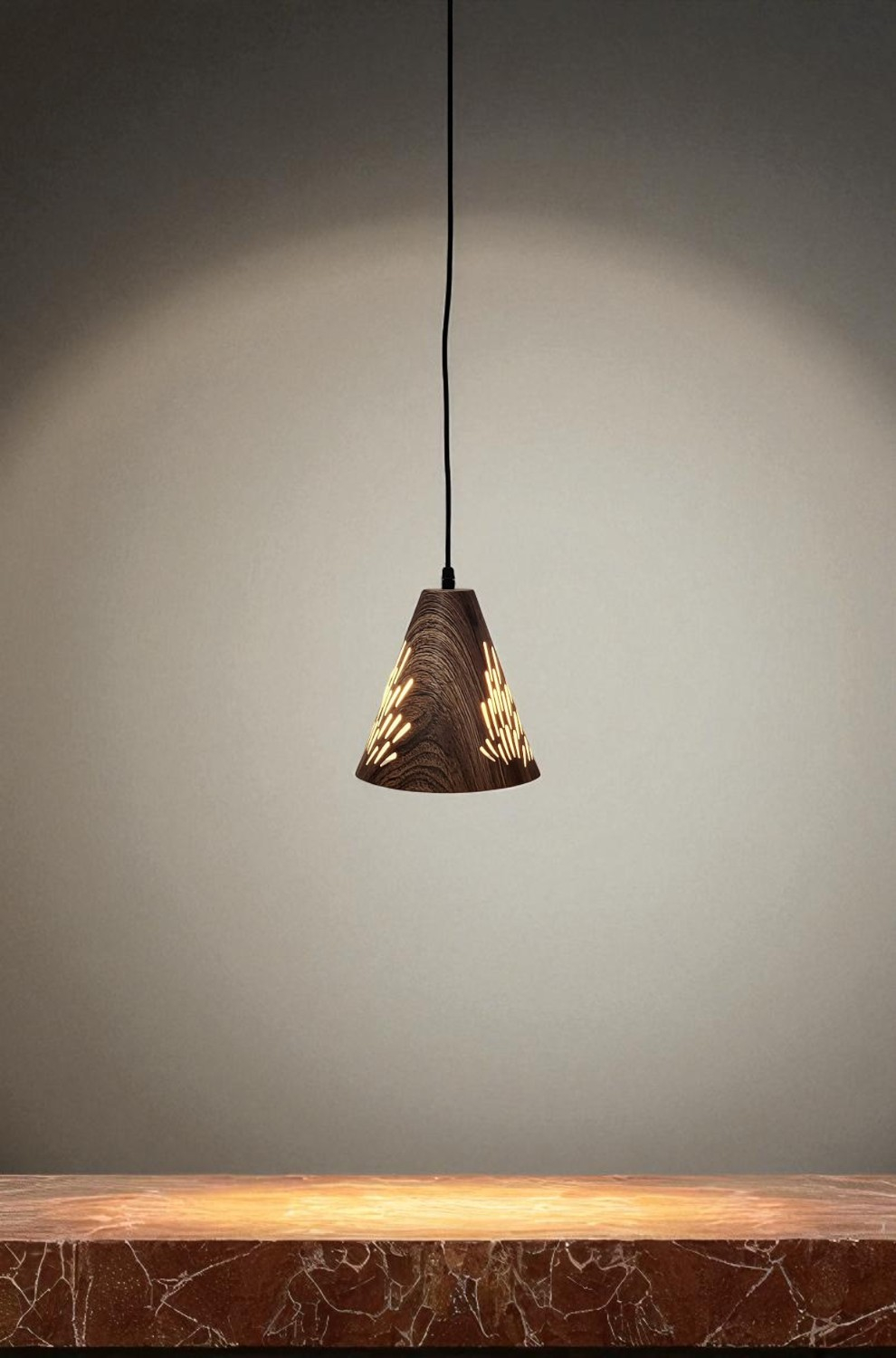 Transformă atmosfera casei tale cu pendulul 611/1, o alegere rafinată ce combină aspectul natural al lemnului cu designul modern al metalului perforat. Finisajul maro cu interior alb asigură o reflexie elegantă a luminii, în timp ce perforațiile creează jocuri vizuale de umbre și străluciri.