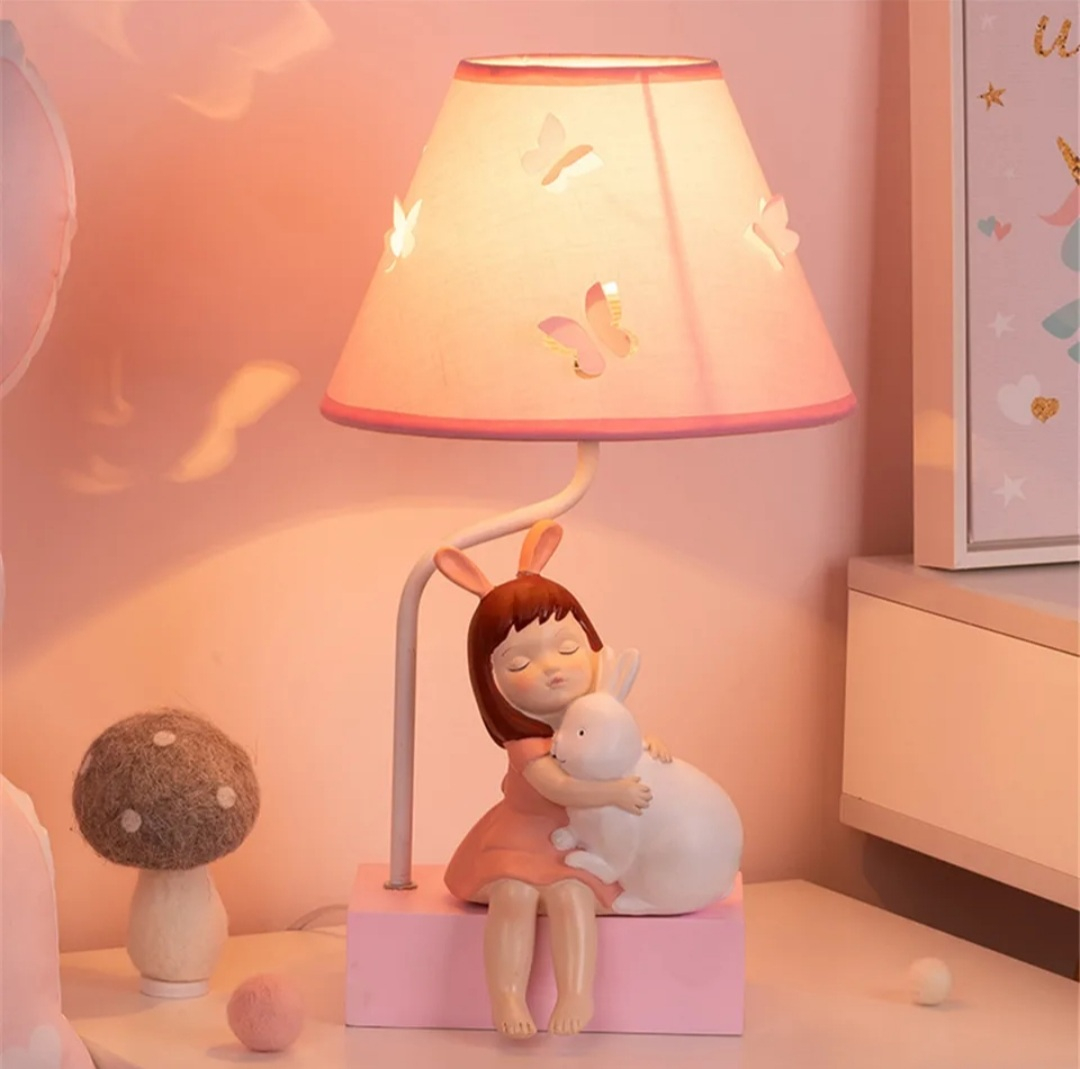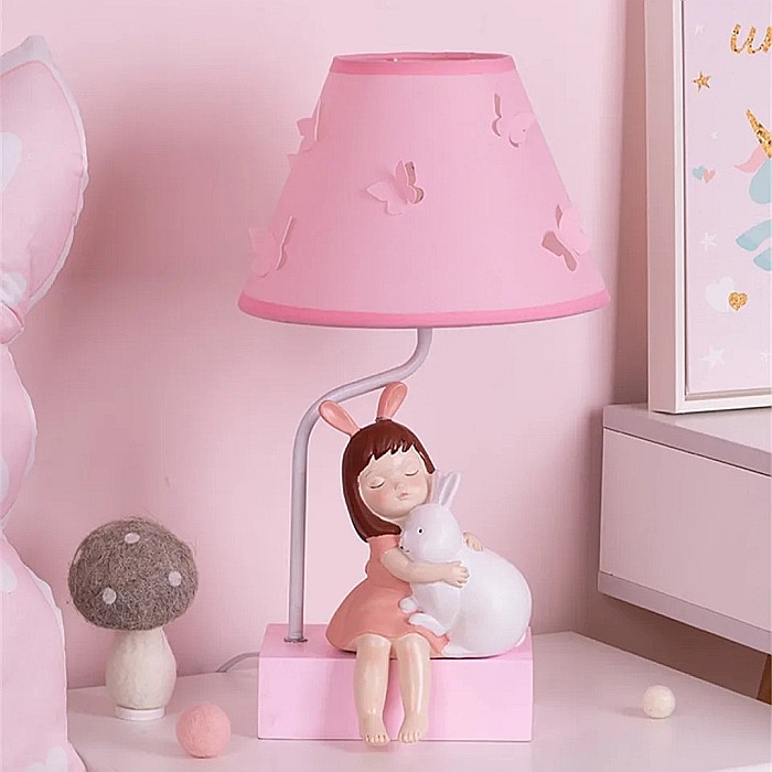 | Design | Abajur cu fluturași, fetita si iepuraș pe bază |